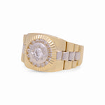 14k Two Tone White/Yellow Round with CZ Men's Fashion Ring