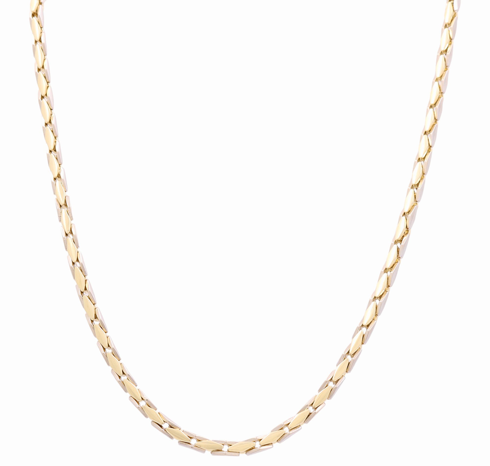 This 24-inch 14K two-tone white and yellow gold chain offers a striking blend of classic warmth and modern sophistication. Expertly crafted to showcase the contrast between gleaming white gold and rich yellow gold, this chain adds depth and versatility to any outfit. Its refined design ensures a comfortable fit while maintaining durability for everyday wear. Whether worn alone for a subtle statement or paired with a pendant, this versatile chain is a timeless addition that enhances your collection with a unique, eye-catching appeal.