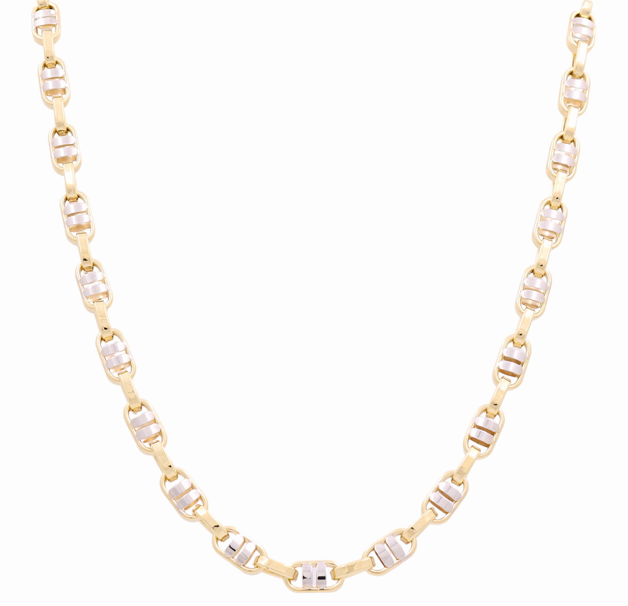 14K Two Tone White/Yellow Gold Fancy Link Chain 24"