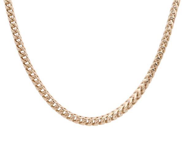 -Indulge in luxury with our 14K Yellow Gold Franco Chain! This stunning piece is sure to elevate any outfit, adding a touch of elegance and sophistication. Durable and finely crafted, it's a timeless investment that will last for years to come. Perfect for special occasions or daily wear, our Franco Chain is a must-have for any jewelry lover's collection. With its exquisite gold finish and intricate design, it's sure to turn heads and make a lasting impression. Step up your style game with our 14K Yellow Gold Franco Chain today!