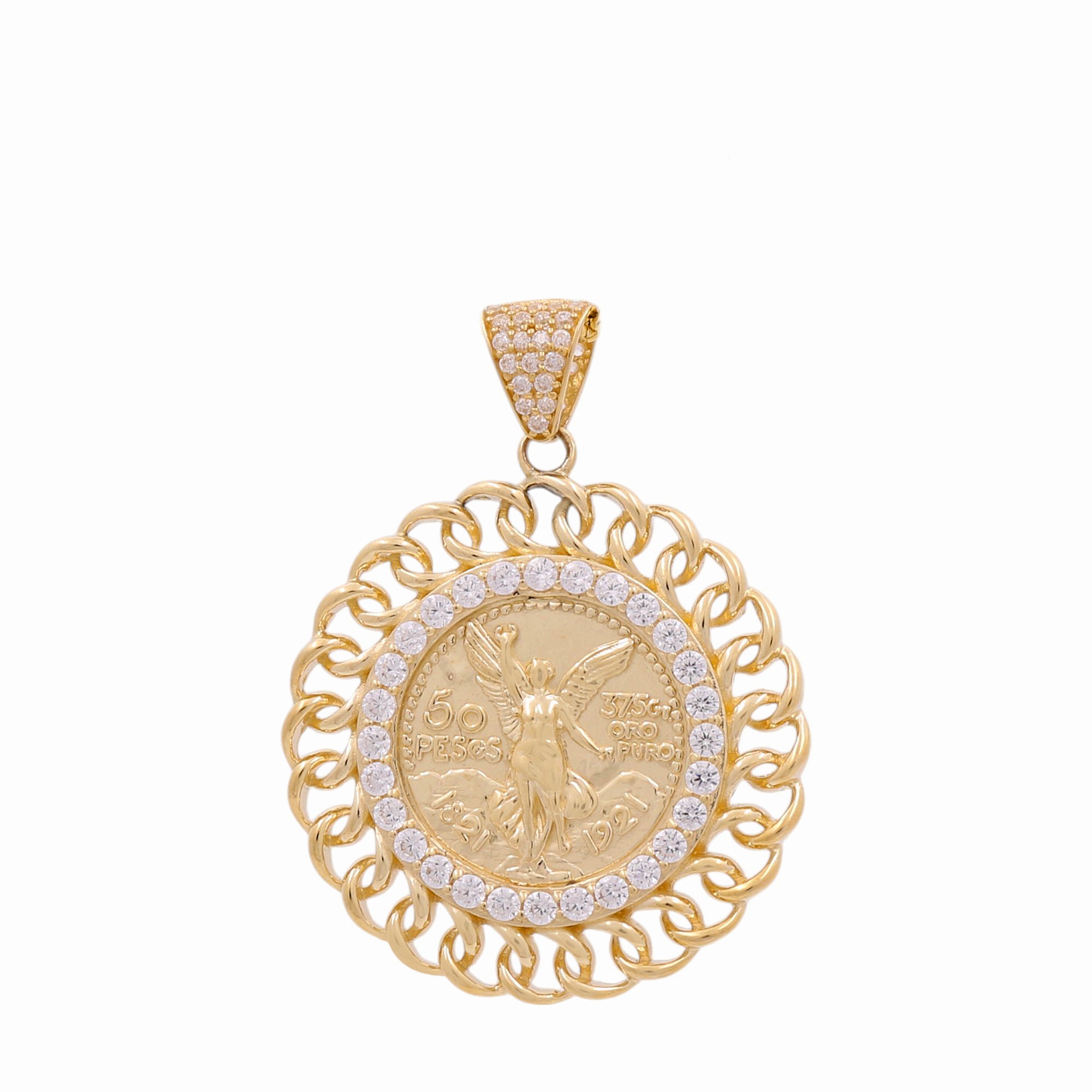 14K Yellow Gold Round Religious Pendant with Zirconias