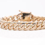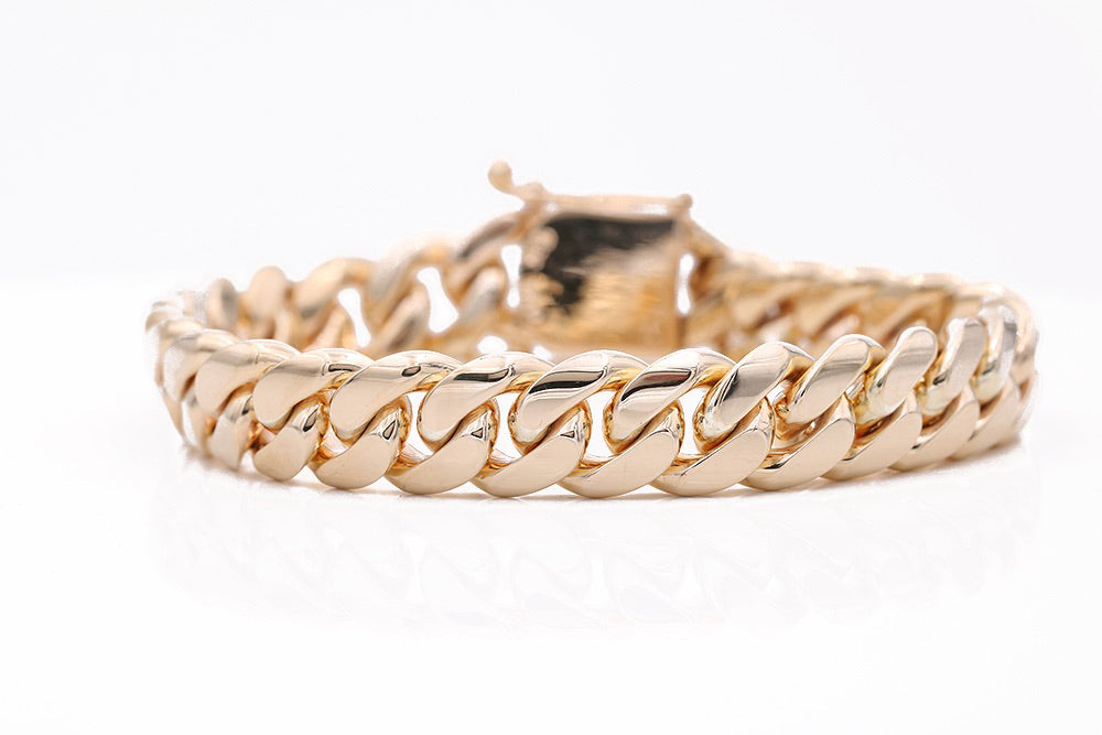 # 14K Yellow Gold Cuban Link Bracelet Make a statement with this sophisticated 14K yellow gold Cuban link bracelet, where premium quality meets timeless design. Crafted from 14K yellow gold—a higher purity than standard alternatives—this bracelet offers superior durability and a richer, more lustrous finish that catches the light beautifully. The signature Cuban link pattern delivers bold visual impact with its interlocking segments, creating a substantial feel that commands attention on the wrist. This versatile piece transitions effortlessly from boardroom to evening wear, making it an essential addition to any refined jewelry collection. Invest in a bracelet built to last generations while maintaining its radiant beauty and prestige.