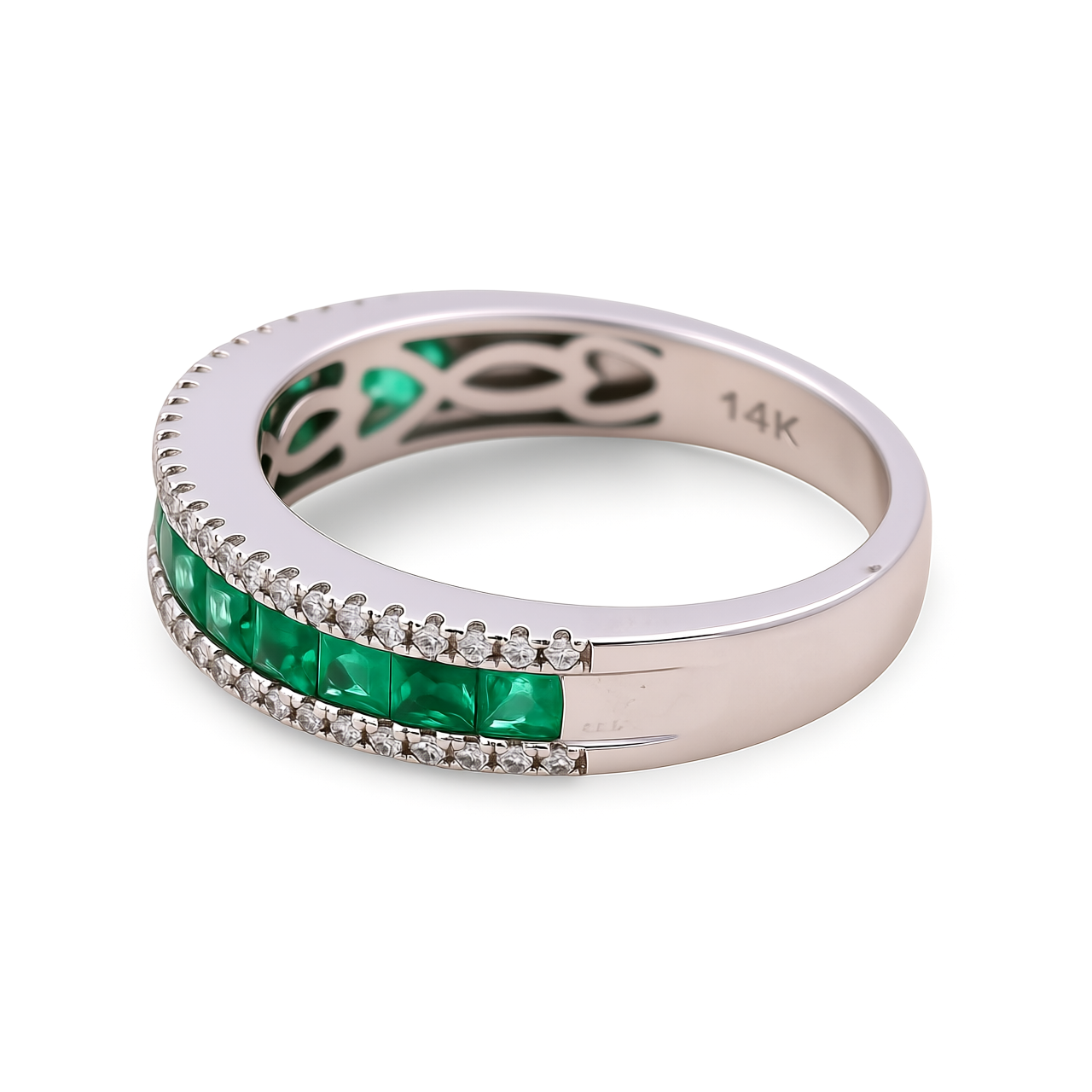 14K Women's Fashion Band with 0.20Tw Round Diamonds and 0.75 Square Cushion Emerald