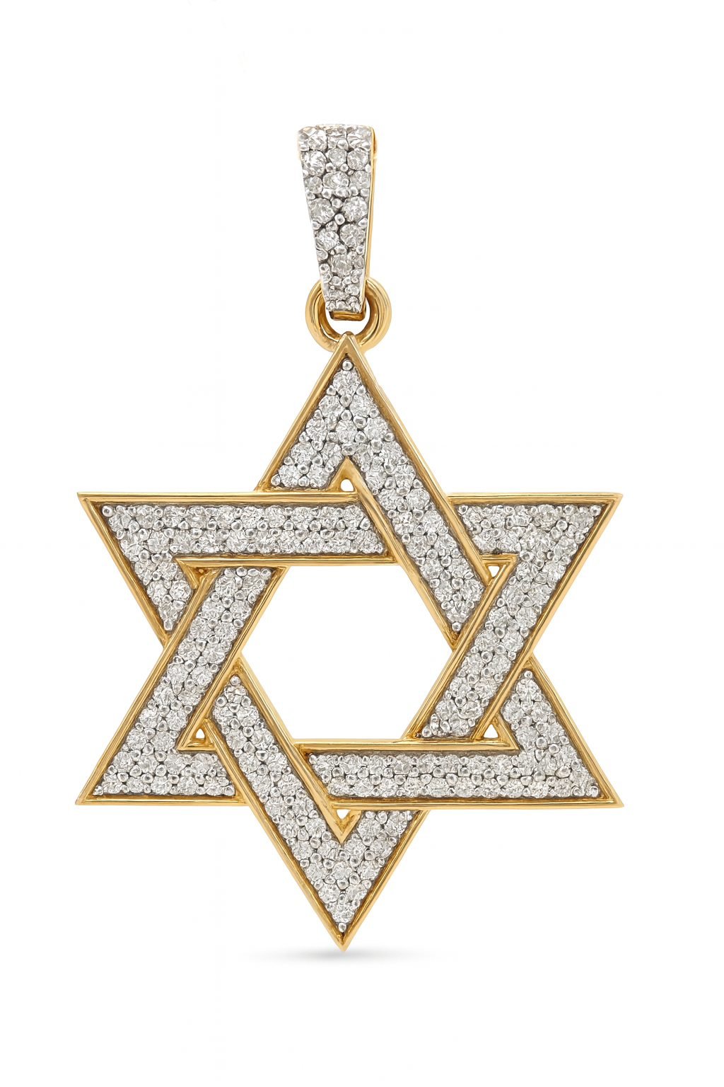 Elevate your jewelry collection with this stunning 10k Yellow Gold Star of David Diamond Pendant, a timeless symbol of faith and heritage crafted with exceptional elegance. Featuring 0.50 carats of brilliant round diamonds meticulously set throughout the iconic six-pointed design, this pendant radiates sophistication and spiritual significance. The warm glow of 10k yellow gold complements the sparkling diamonds perfectly, creating a piece that transitions seamlessly from everyday wear to special occasions. Whether you're drawn to its meaningful symbolism or its undeniable beauty, this pendant makes a powerful statement. The secure setting ensures your diamonds remain brilliant for generations, making this an investment piece worthy of your most cherished moments. A versatile addition to any collection, this Star of David pendant combines cultural significance with luxurious craftsmanship.