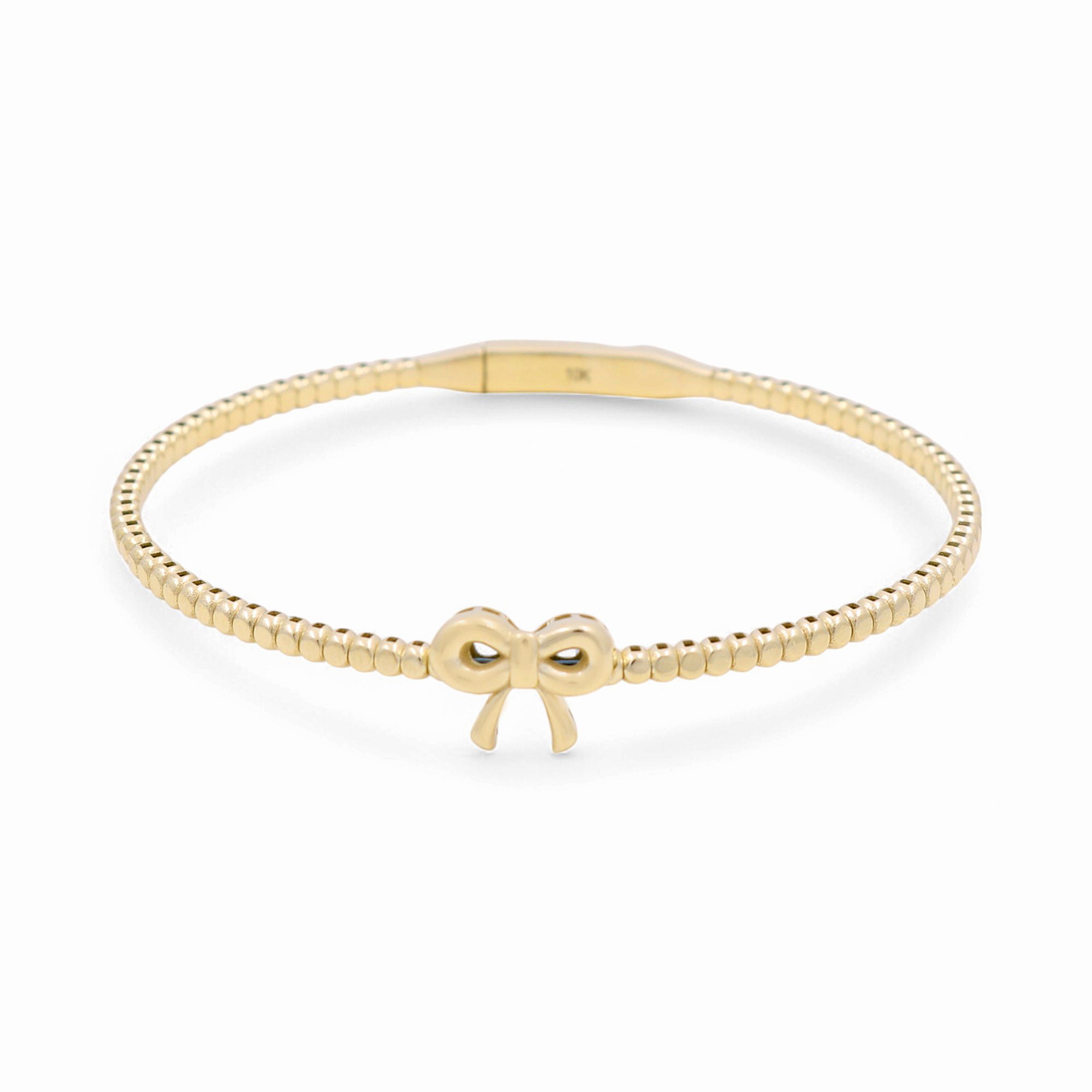 Indulge in luxury and elevate your style with our 10K Yellow Gold Bangle Bracelet. Made with high-quality, solid gold, this bracelet exudes elegance and sophistication. Perfect for any occasion, this accessory will make a statement and add a touch of glamour to your outfit. Treat yourself to the ultimate indulgence or spoil a loved one with this exquisite piece. Experience the benefits of owning a timeless and versatile piece of jewelry that will last a lifetime.