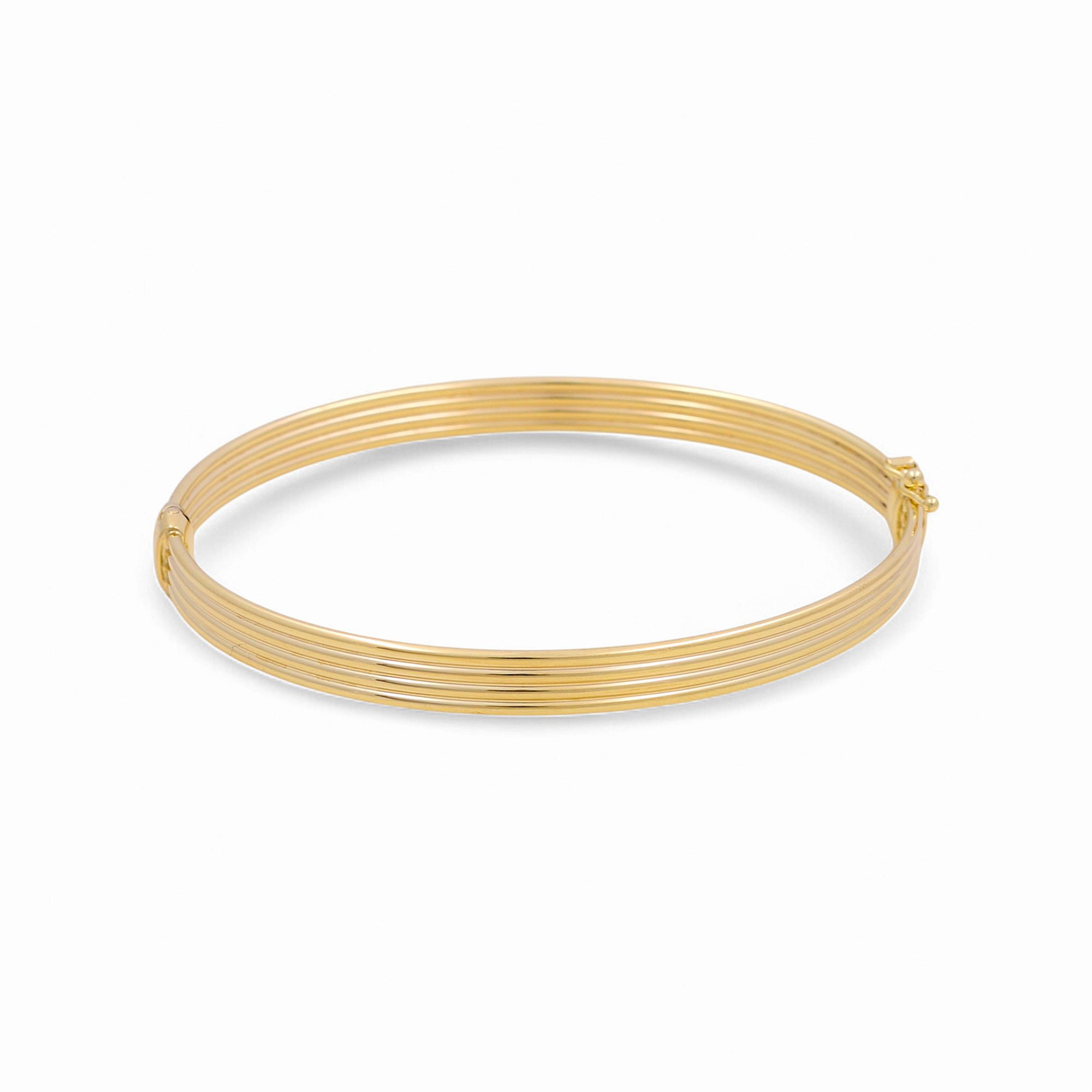 Glow with beauty and elegance with our stunning 14K Yellow Gold Bangle Bracelet. Made with high-quality materials, this bracelet will elevate any outfit and add a touch of sophistication to your look. The perfect accessory for any occasion, its timeless design will make you feel confident and stylish. Make a statement and wear our luxurious bangle bracelet today!