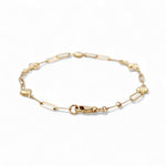 Unlock your style with this enchanting 14K yellow gold paper clip bracelet, beautifully adorned with heart and key charms that symbolize love and possibility. The contemporary paper clip link design offers a modern twist on classic jewelry, creating visual interest through its distinctive geometric aesthetic while maintaining the timeless warmth of genuine yellow gold. The heart charm represents affection and connection, while the key charm symbolizes unlocking new chapters and cherished secrets—together they tell a story of meaning and intention. This bracelet seamlessly bridges casual and sophisticated settings, making it equally at home with everyday wear or special occasion styling. The lightweight yet durable construction ensures comfortable all-day wear, while the secure clasp keeps your meaningful charms safely in place. Whether you're drawn to its symbolic significance or its fashion-forward design, this piece celebrates individuality and personal expression. Perfect as a gift for someone special or as a treat for yourself, this bracelet combines contemporary edge with sentimental depth, creating a wearable reminder of what truly matters in your life.