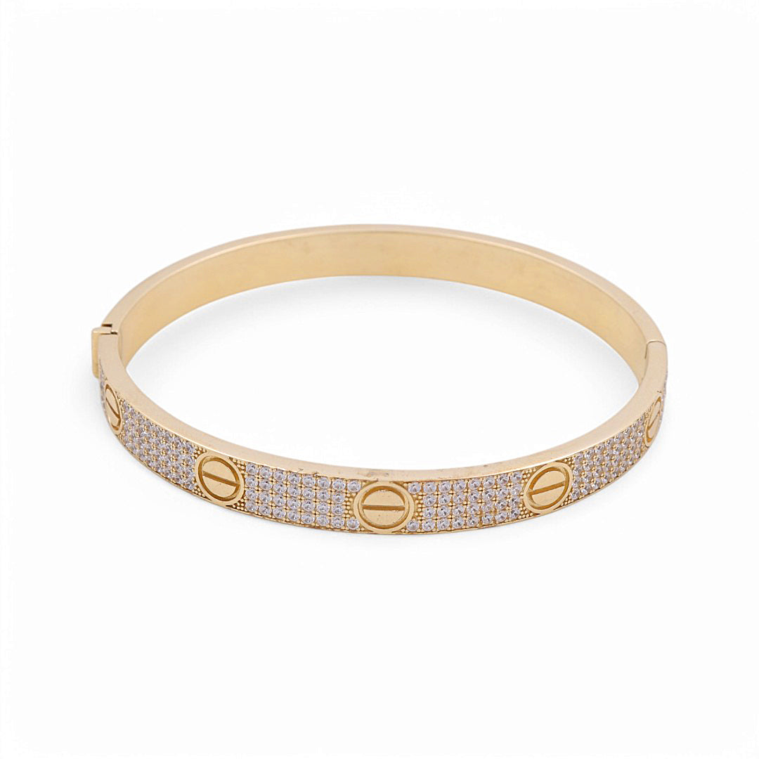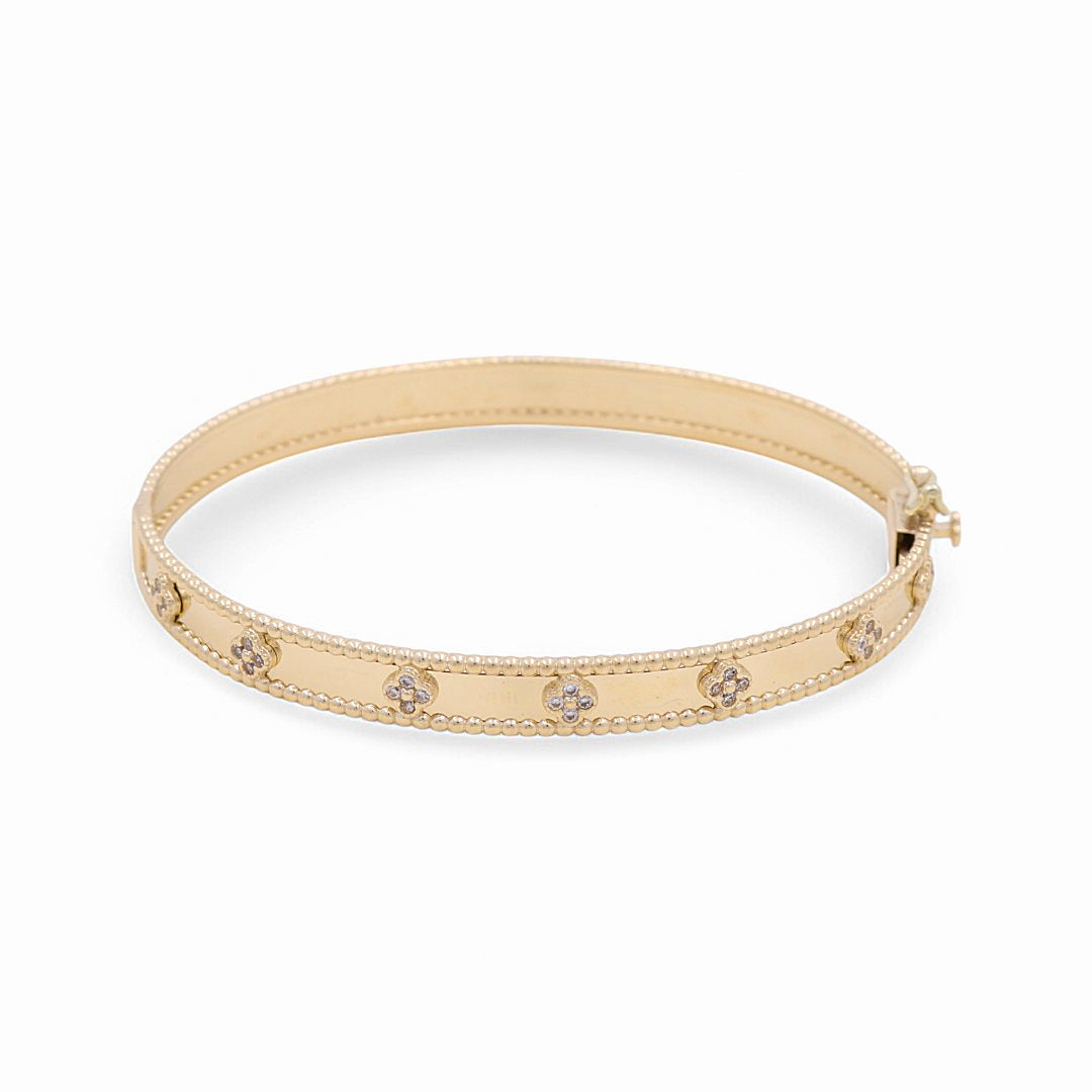 14K Yellow Gold Bangle with Cz Women's Bracelet