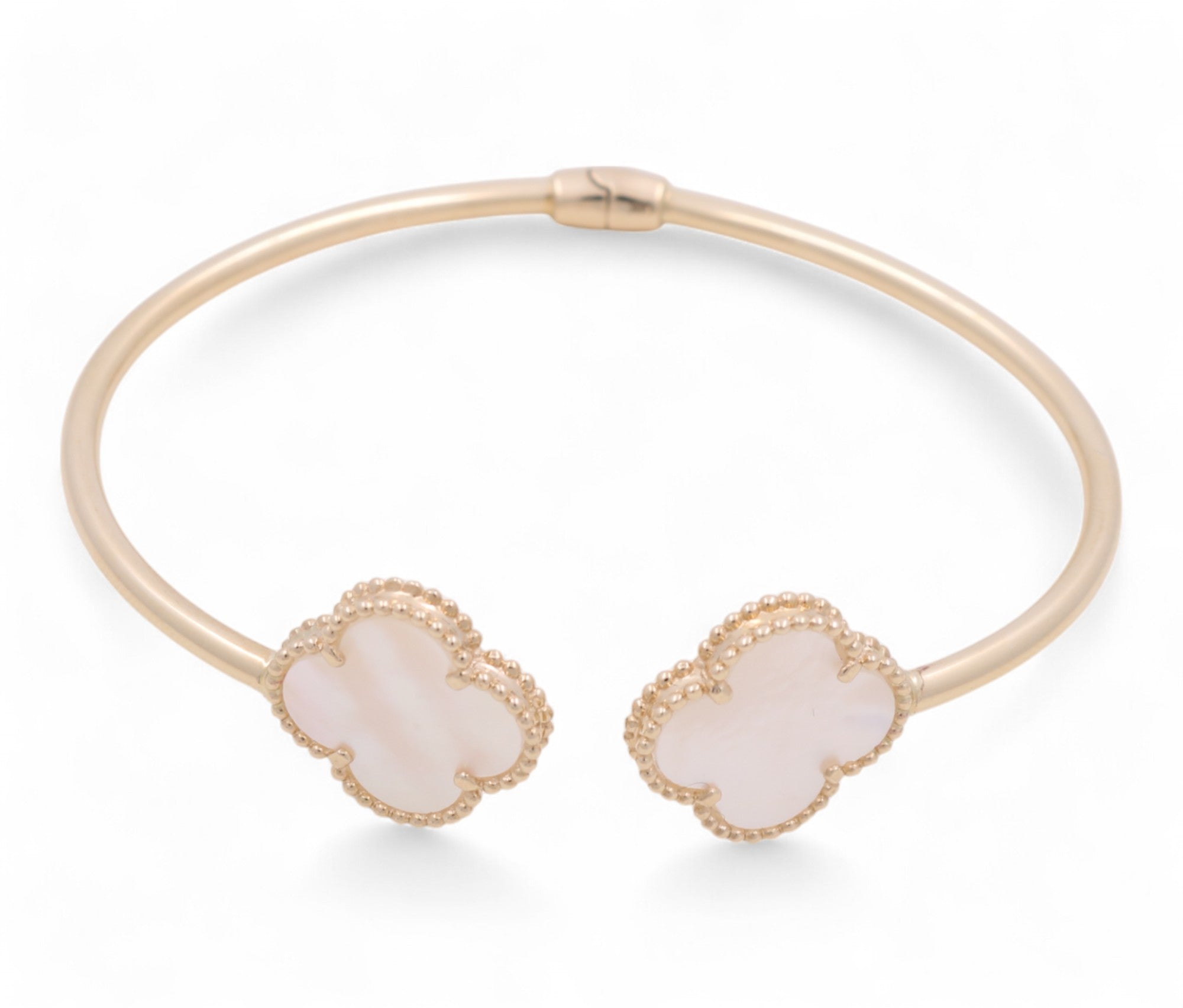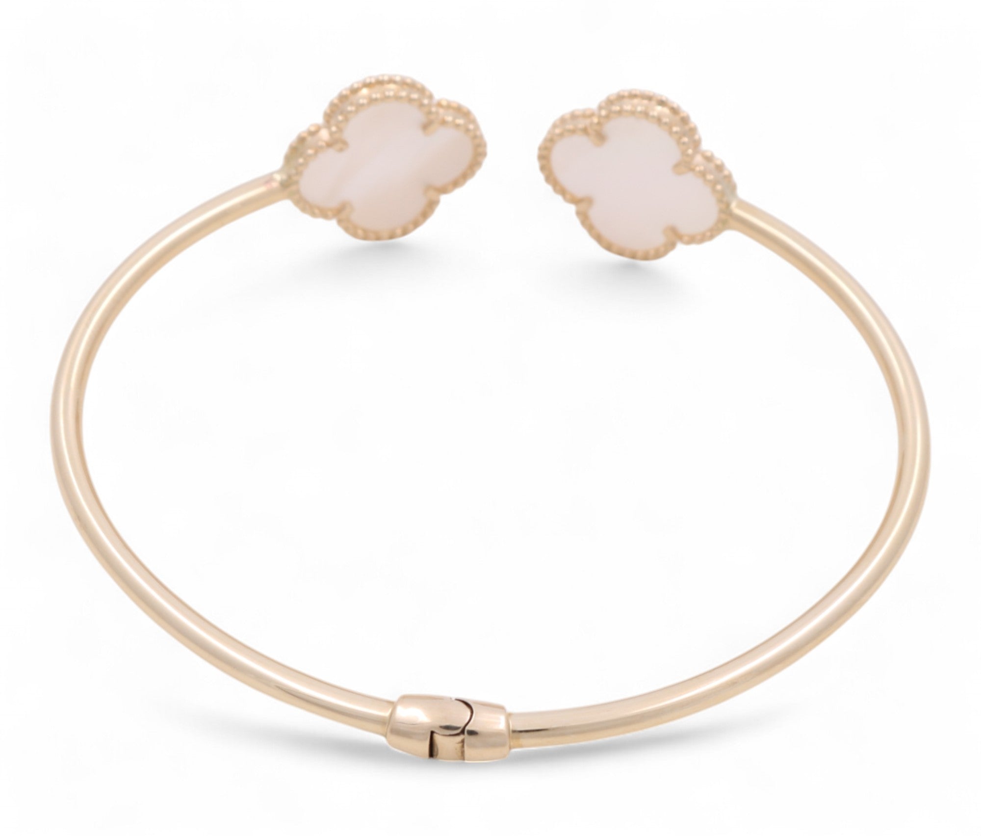 14K Yellow Gold Bangle with Two MOP Women's Bracelet