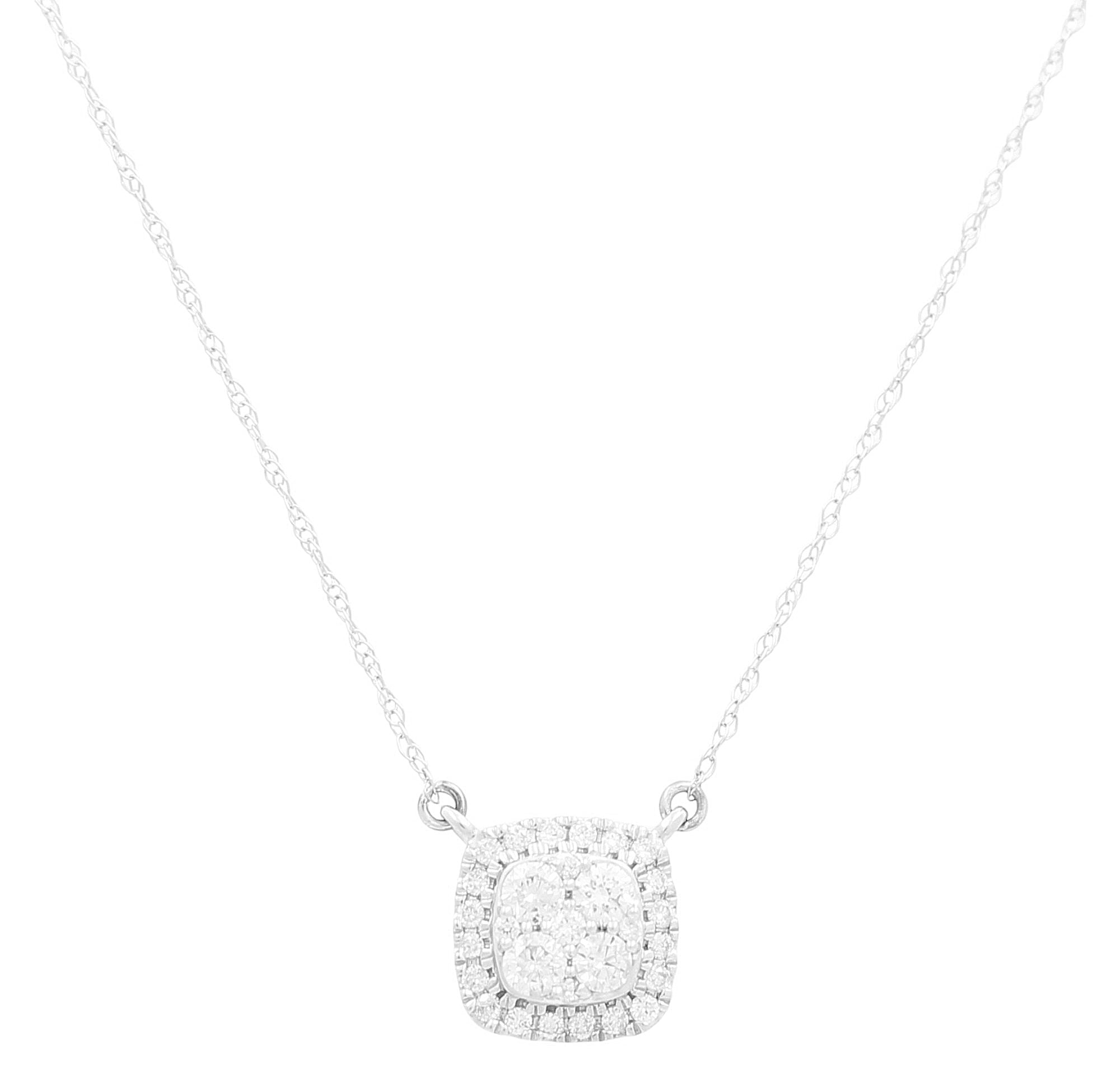 14K White Gold Square Women's Necklaces with 0.33Tw Round Diamonds