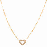 18k Yellow Gold Paper Clip with Heart Diamond Necklace with 0.69 Tw Round Diamonds
