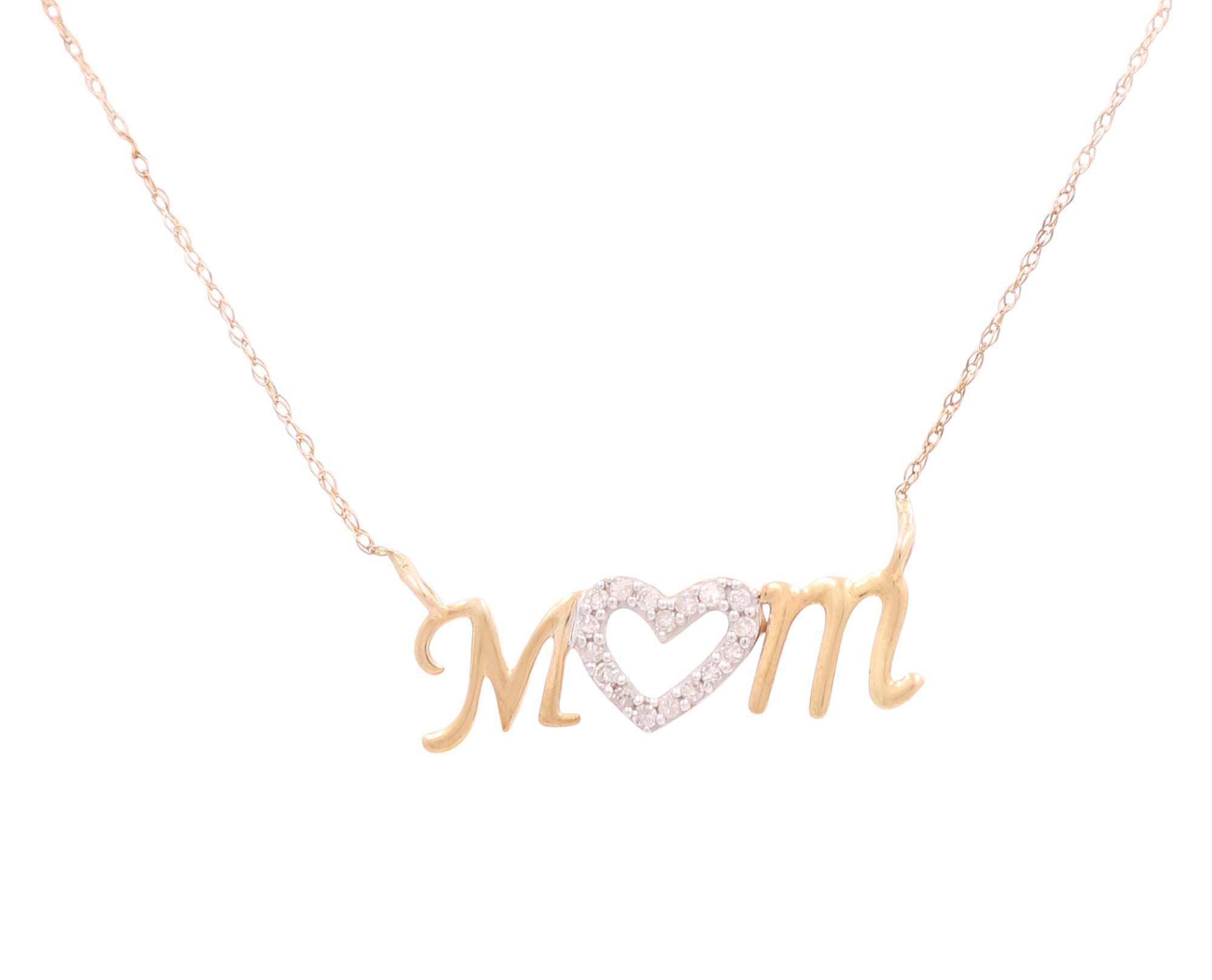 10K Yellow Gold Dia Mom Women's Necklaces with 0.10Tw Round Diamonds