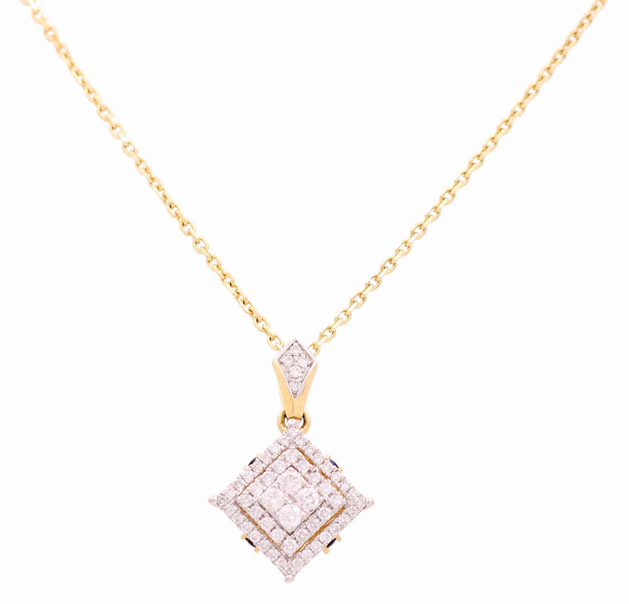 Yellow Gold Necklace with Diamond Pendant 14K with 0.50Tw Round Diamonds and 0.08Tw Round Sapphires