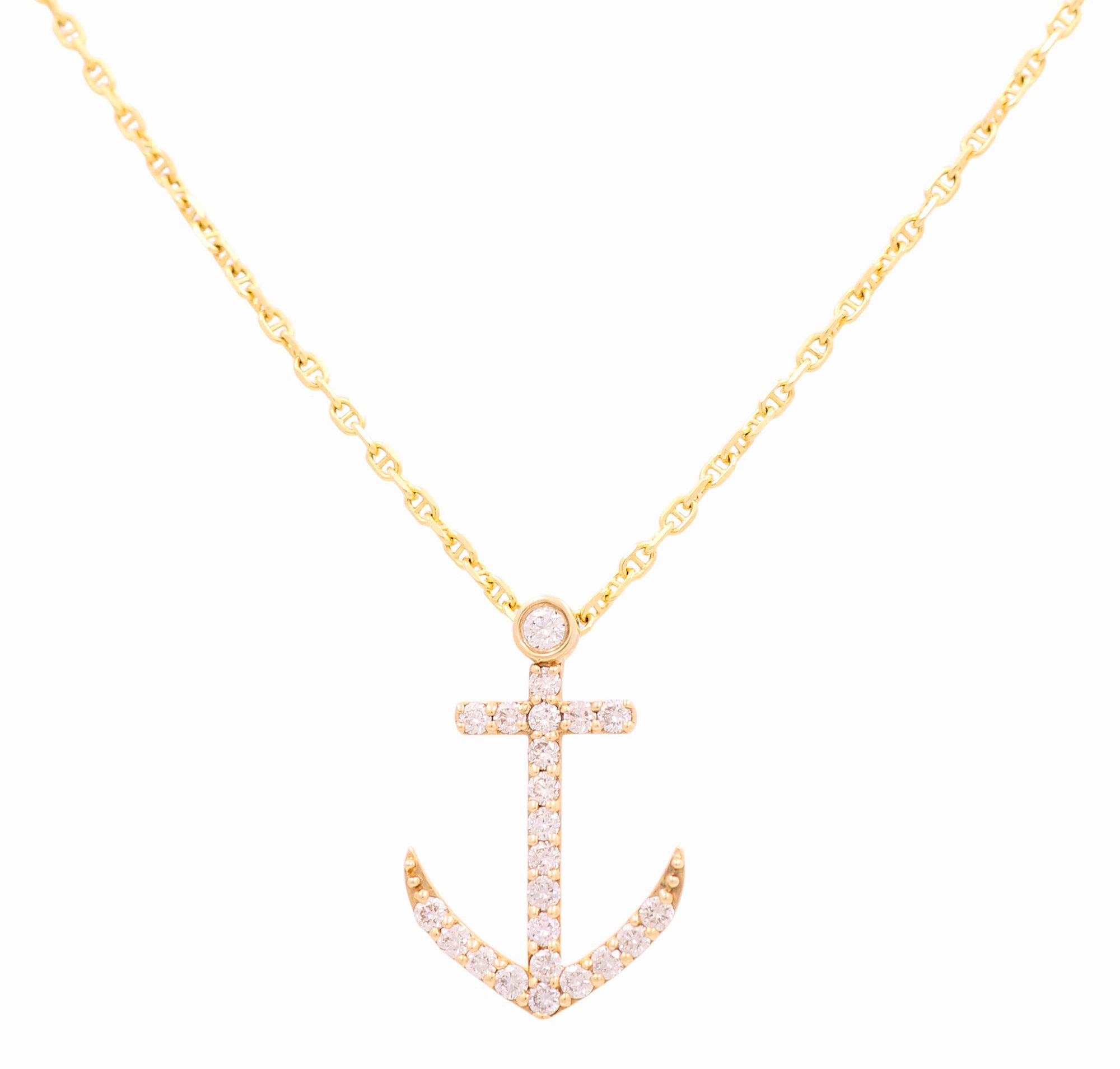 Yellow Gold Necklace with Anchor Pendant 14K with 0.85Tw Round Diamonds