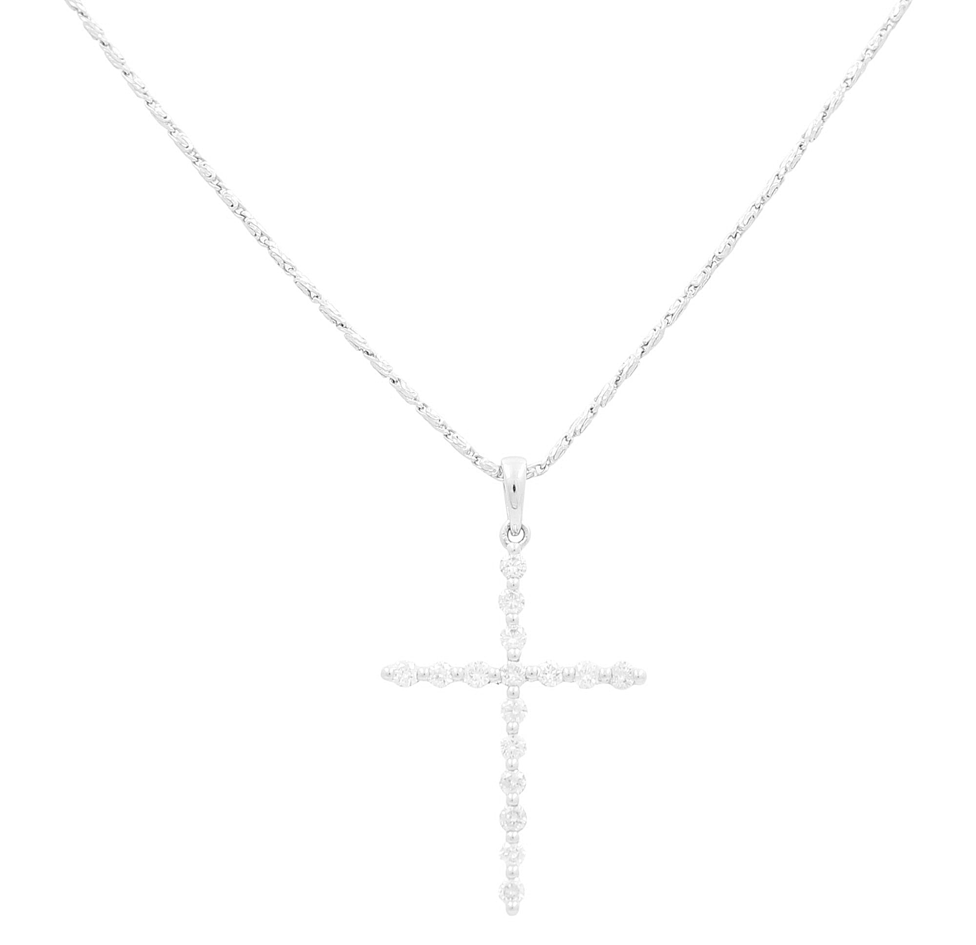 White Gold Necklace with Cross Pendant 14K with 0.35Tw Round Diamonds
