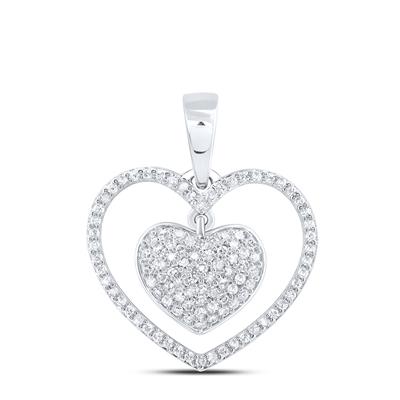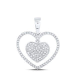 10k White Gold Double Heart Women's Pendant with 0.33Tw Round Diamond