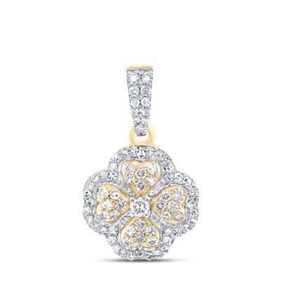 10k Yellow Gold Flower Women's Pendant with 0.37Tw Round Diamond