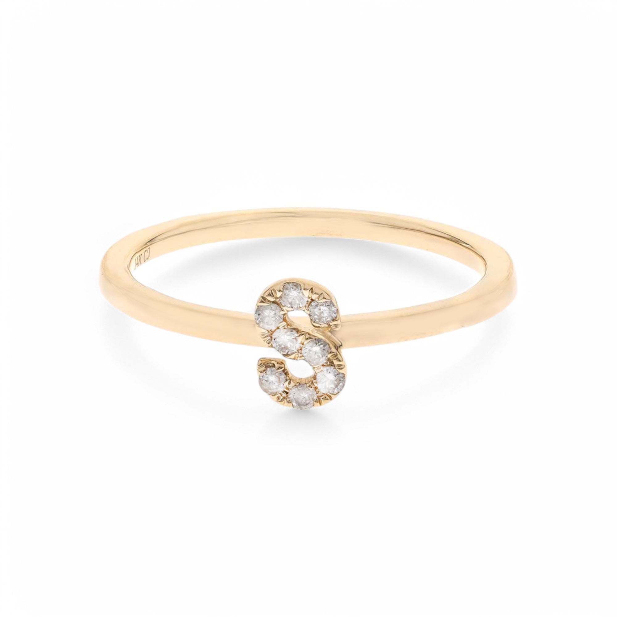 14K Yellow Inicial S Diamond Fashion Ring with 0.09Tw Round Diamonds
