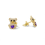 14K Yellow Gold Bear Purple Earrings