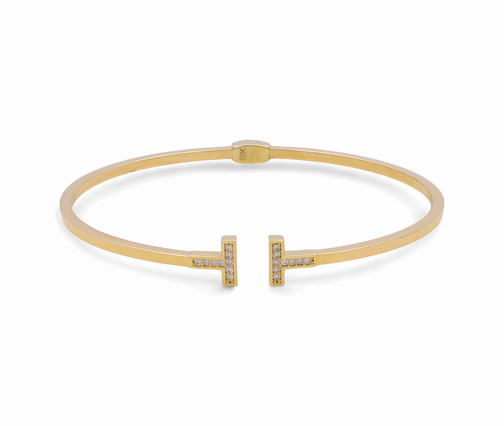 10K Yellow Gold Bangle with Cz Women's Bracelet