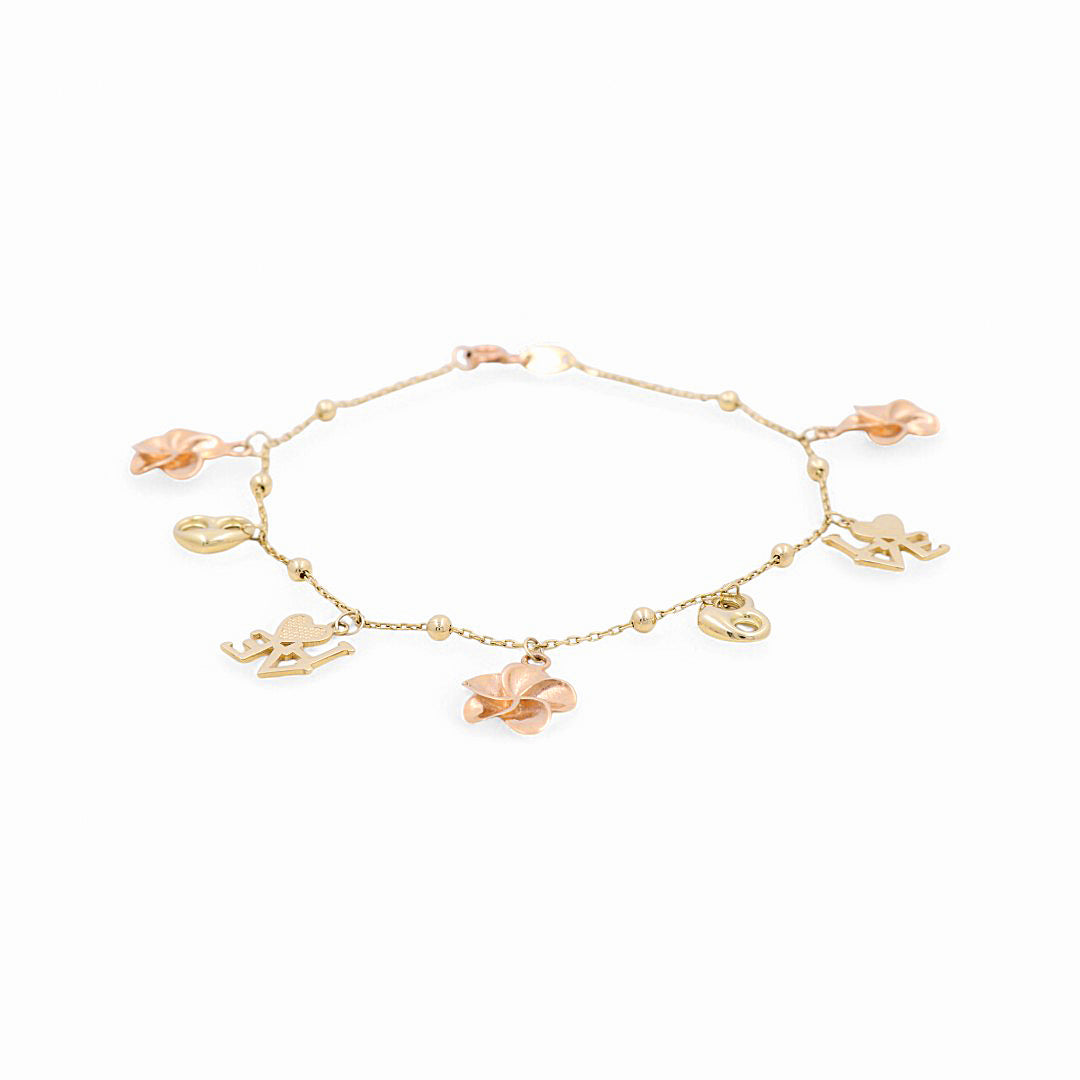 14K Two Tone Yellow/Rose Gold Charms Women's Bracelet