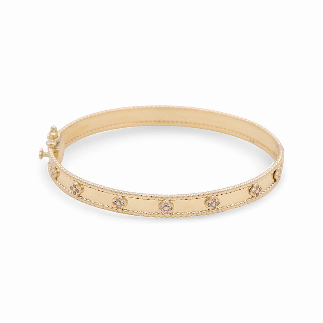 Elevate your style and showcase your taste with our 14K yellow gold bangle bracelet. Crafted with precision and attention to detail, this bracelet adds a touch of luxury to any outfit. The warm tone of the gold will catch the light and make you feel like a goddess. Don't settle for ordinary jewelry, treat yourself to the elegance and sophistication of our 14K yellow gold bangle bracelet. It's the perfect statement piece for any occasion, sure to turn heads and make you feel confident and radiant. Elevate your jewelry collection and elevate your life with our stunning 14K yellow gold bangle bracelet.