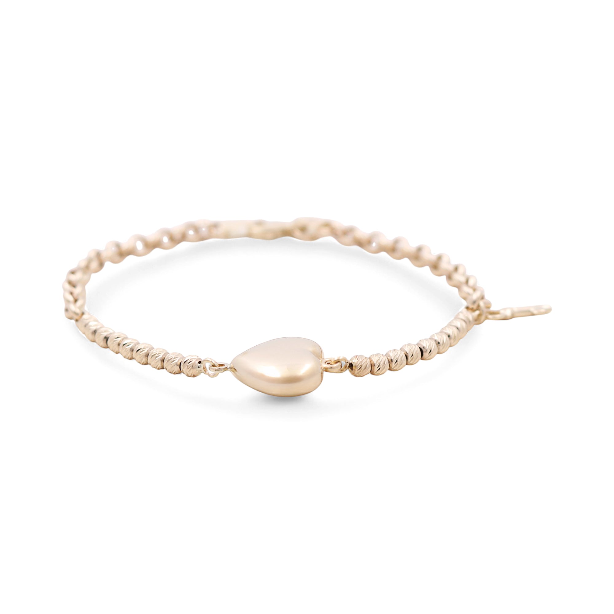 14K Yellow Gold Diamond Cut Heart Charms Women's Bracelet