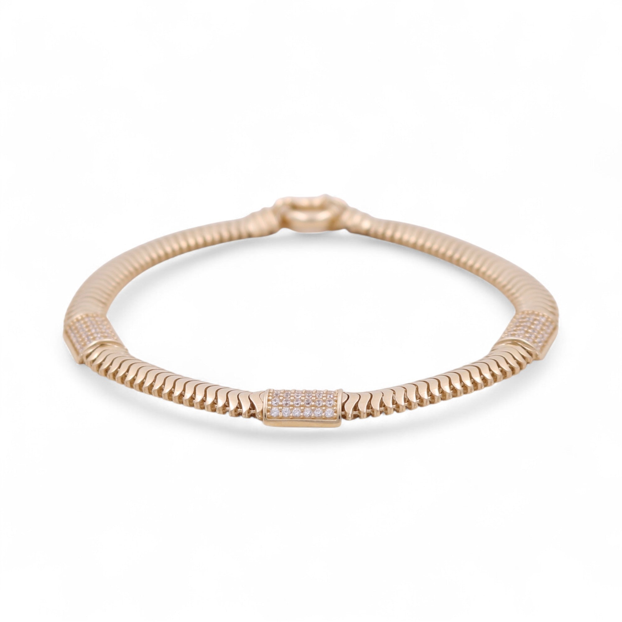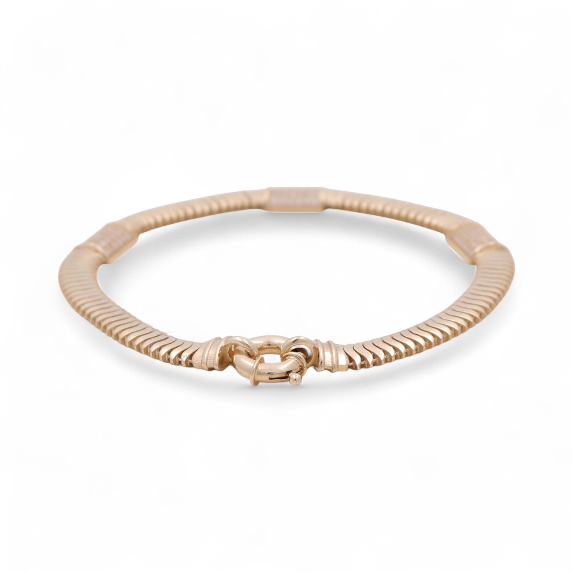 14K Yellow Gold Snake Link With Cz Women's Bracelet