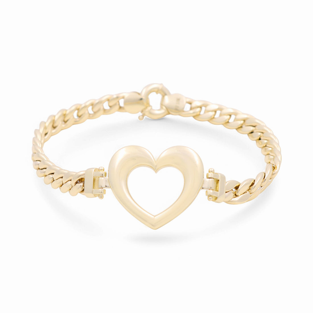 14K Yellow Gold Fancy Link with Hearts Women's Bracelet