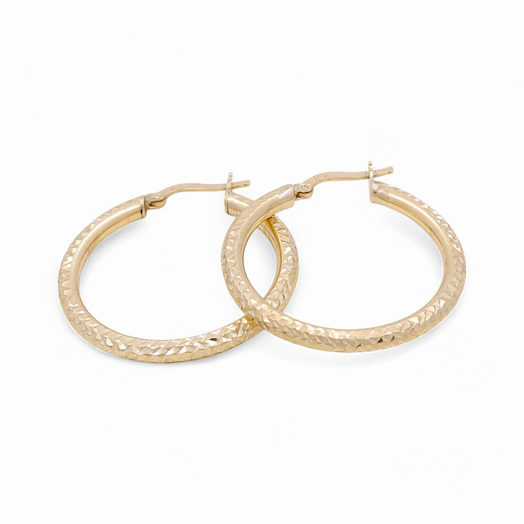 10K Yellow Gold Diamond Cut Large Hoop Earrings