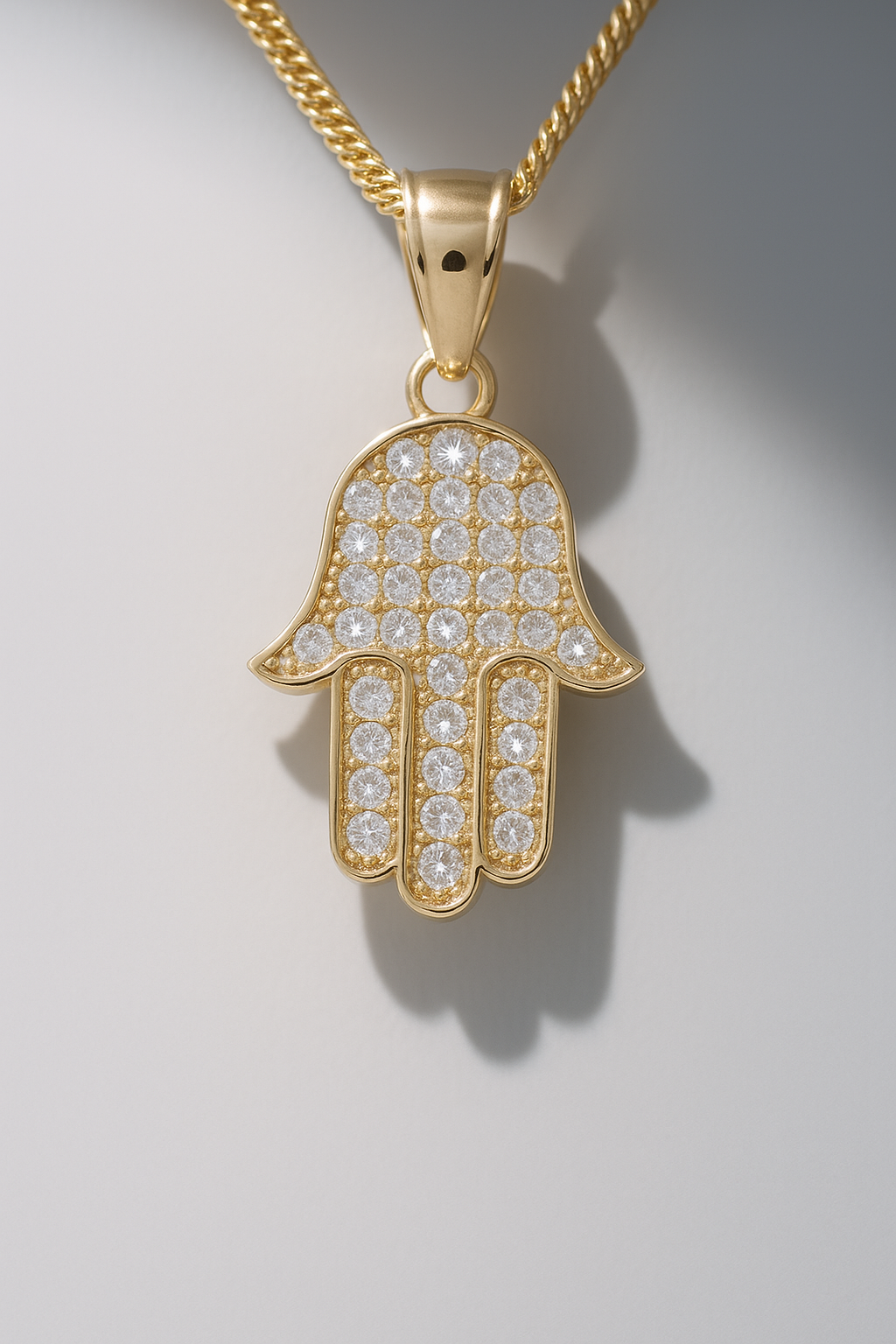 14K Yellow Gold Hamsa Hand with Cz Pendant