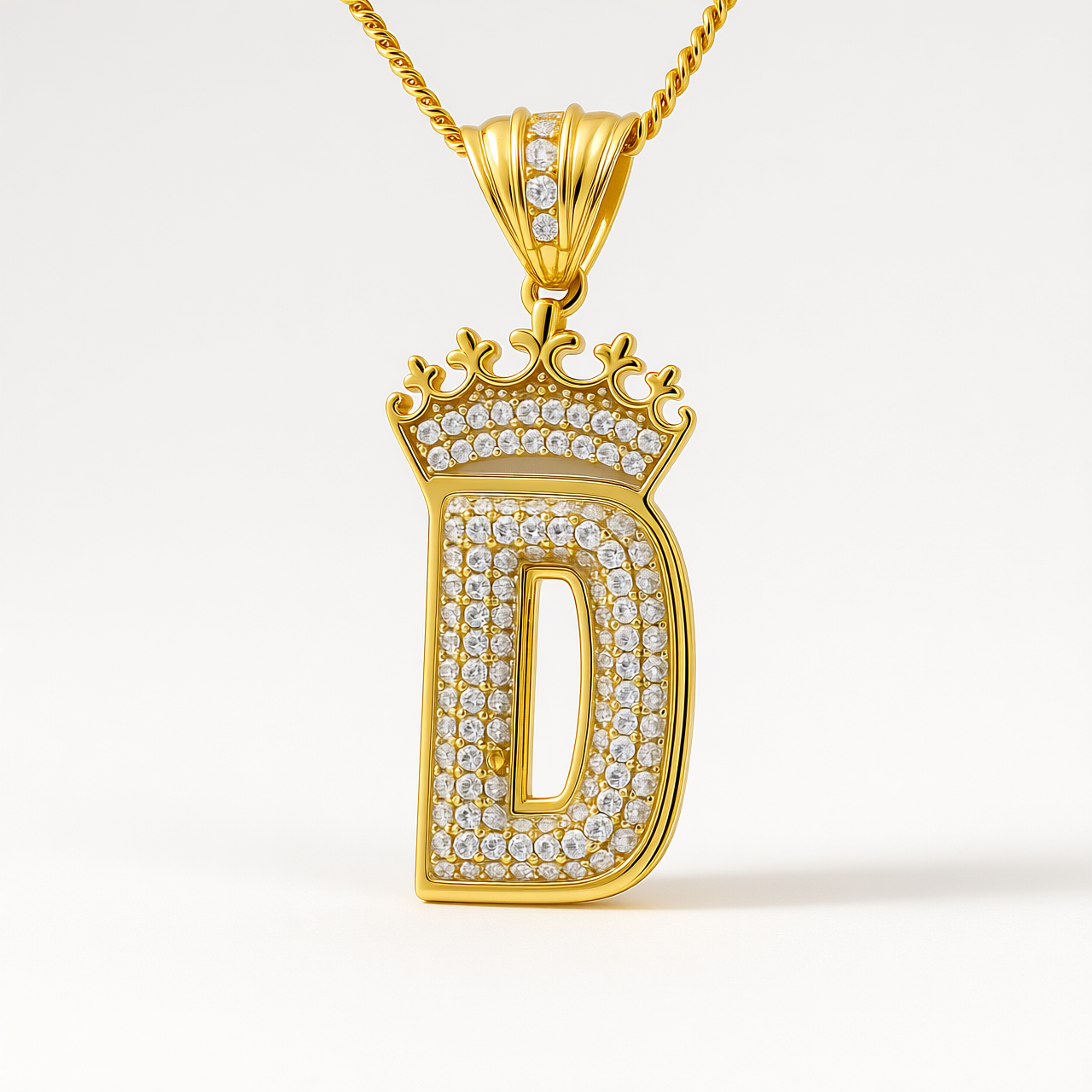14K Two Tone White/Yellow Gold Initial L with Crown and CZ Pendant