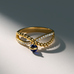 14K Yellow Gold Blue Eye Fashion Women's Ring