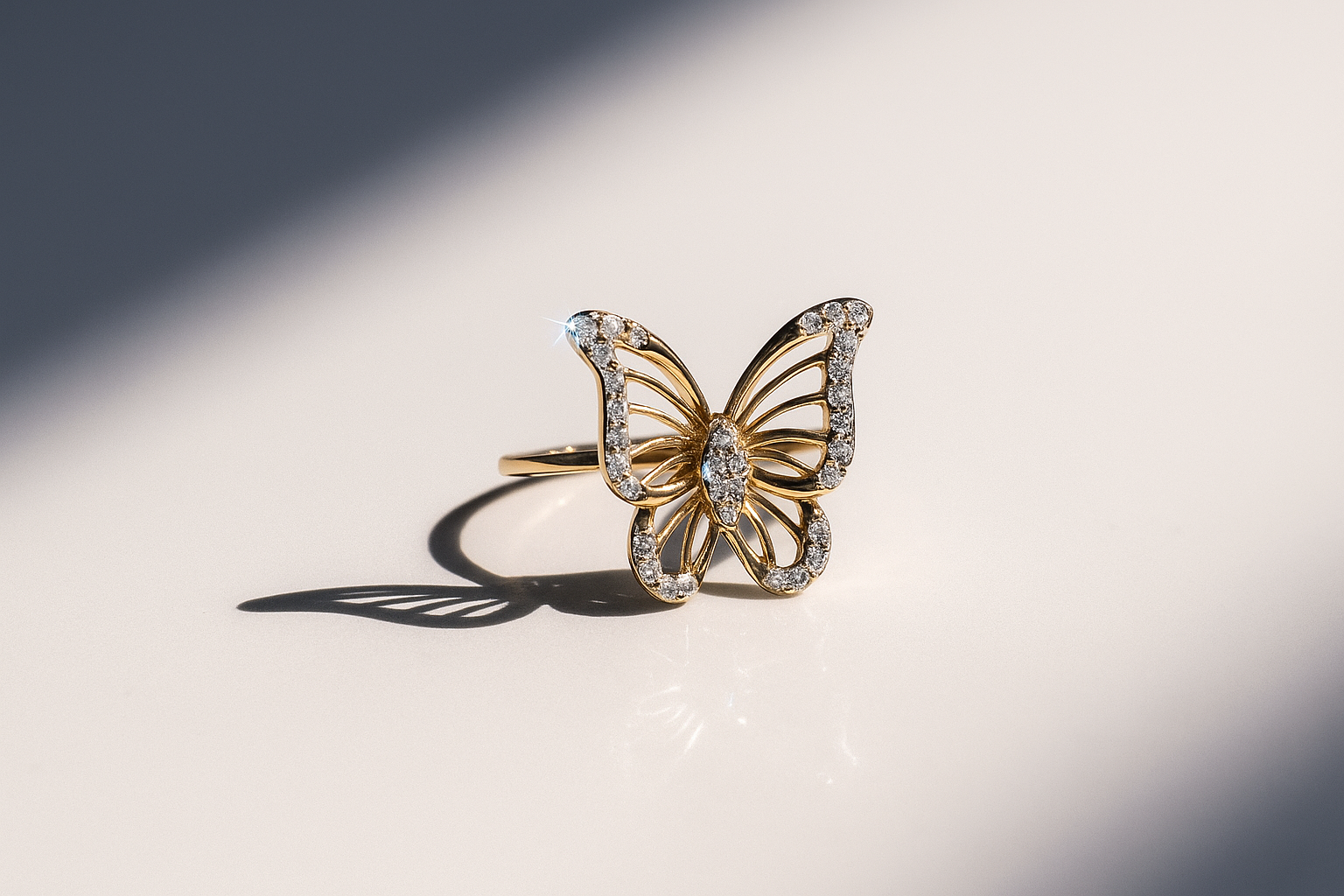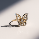 14K Yellow Gold Butterfly with Cz Fashion Women's Ring