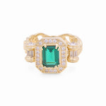 14K Yellow Gold Green Square with Cz Fashion Women's Ring