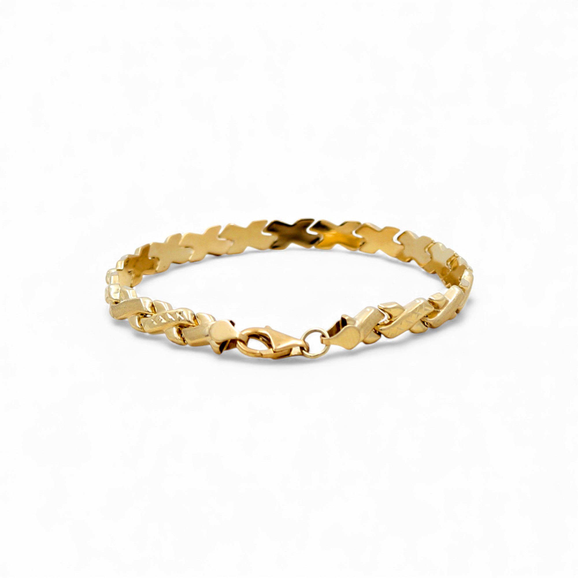 14K Yellow Gold Diamond Cut with Flowers Women's Bracelet