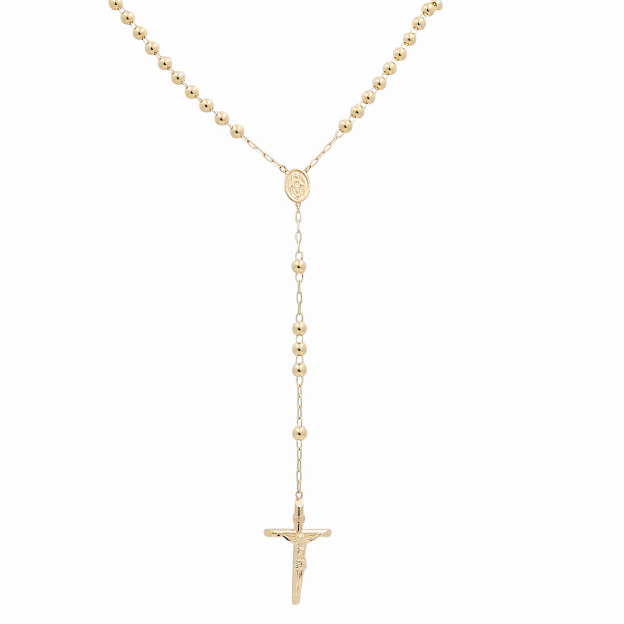 Carry your faith with you in luxurious style with our 14k Yellow Gold Rosary Necklace. Crafted with high-quality materials, this necklace serves as a daily reminder of your beliefs and values. Its intricate design and stunning gold color make it a beautiful statement piece that will surely catch the eye of others. Perfect for special occasions or everyday wear, our Rosary Necklace will keep you connected to your spirituality and fashion-forward at the same time!