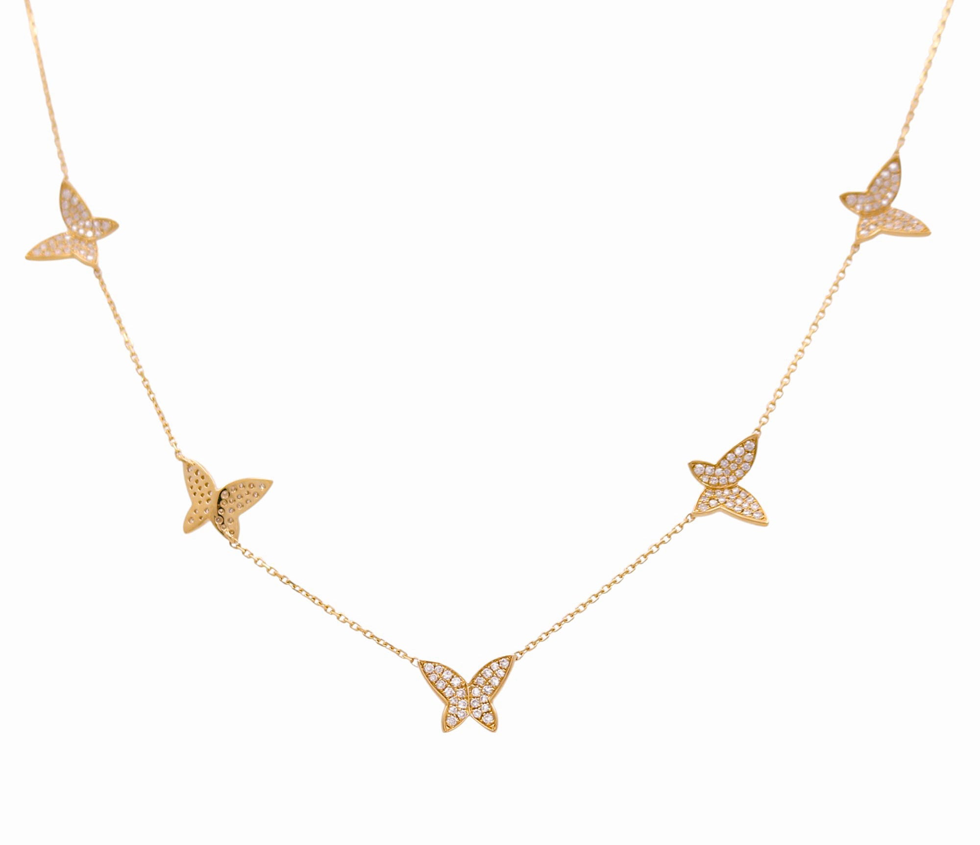 14k Yellow Gold Butterflies Diamond Necklace with 0.65 Tw Round Diamonds