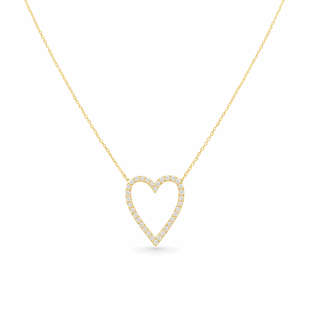 14k Yellow Gold Heart Diamond Necklace with 0.15 Tw Round Diamonds