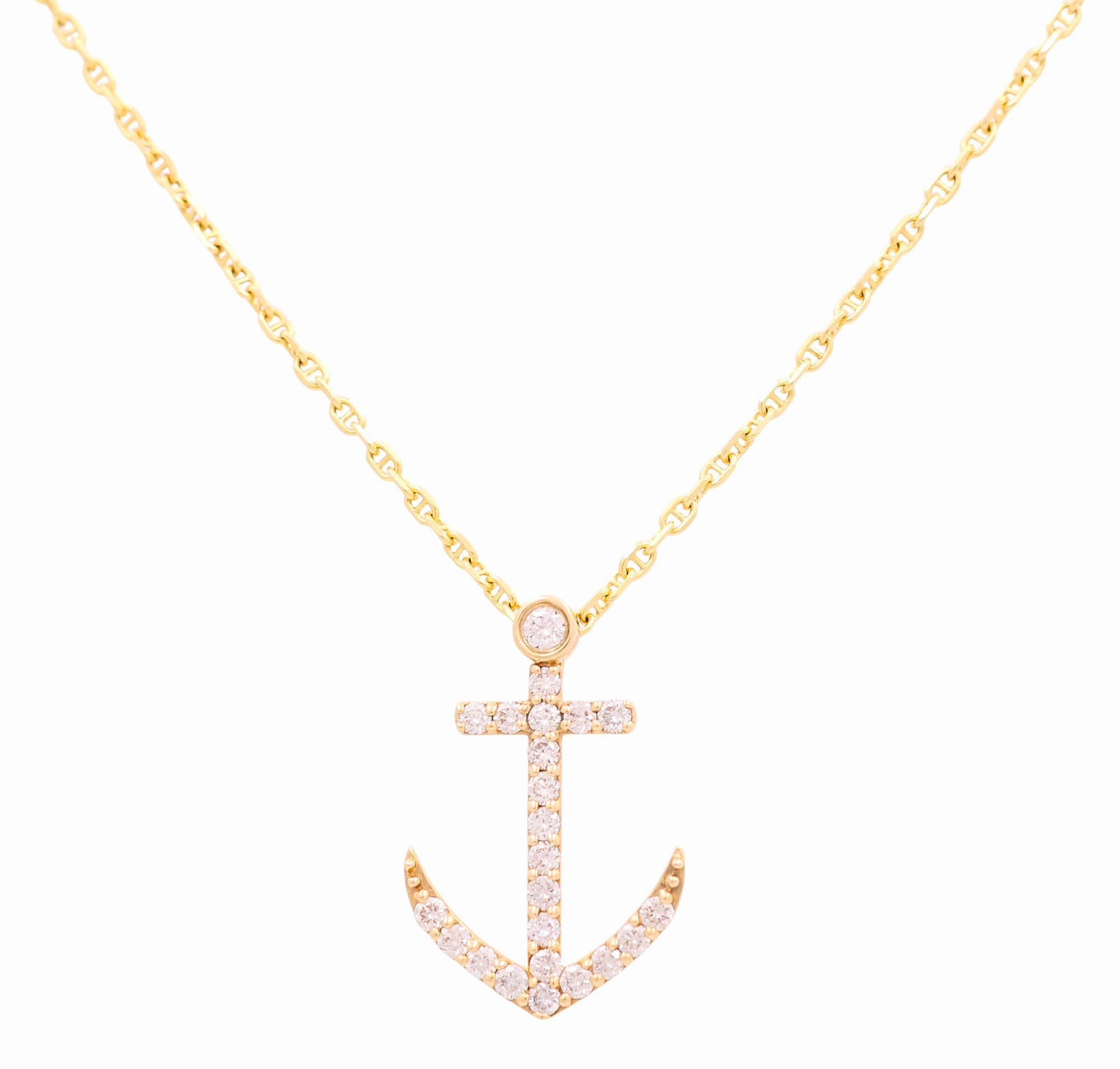 Yellow Gold Necklace with Anchor Pendant 14K with 0.85Tw Round Diamonds