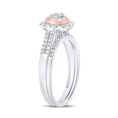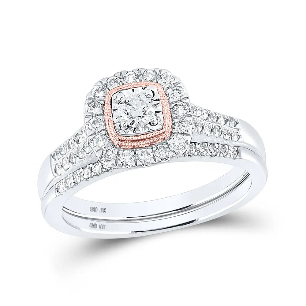 10k Two-tone Gold Round Diamond Bridal Wedding Ring Set 1/2 Cttw