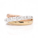 Women's Tri Color Rose , White and Yellow Gold 14k Fancy Diamond Fashion Ring With 1.23Tw Round Diamonds