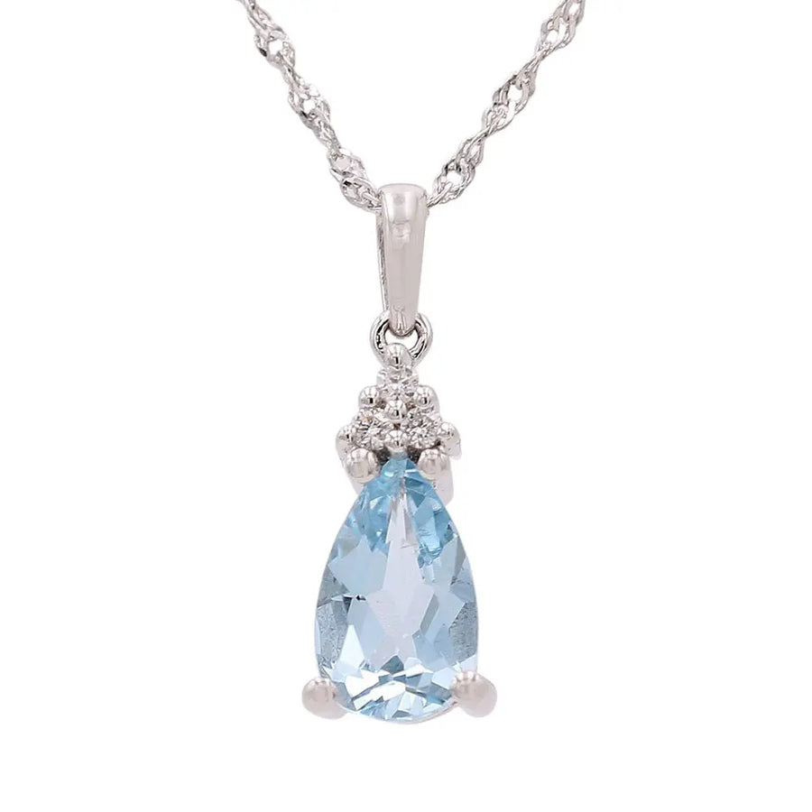 Women's White 14 Karat Fancy Link Necklace Length 18 With 0.03Tw Round Diamonds And 0.62Tw Pear Aqua