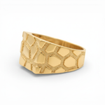 Make a bold statement with this expertly crafted 10k yellow gold men's ring, showcasing an authentic nugget design that celebrates natural texture and form. The irregular, sculptural surface creates visual intrigue and dimension, appealing to those who appreciate unconventional luxury. Forged from genuine 10k yellow gold, this ring delivers exceptional durability and lasting value while maintaining the warm, inviting glow of fine precious metal. The nugget aesthetic works beautifully as a standalone piece or as a complementary accent within a curated ring collection. Ideal for the modern man seeking distinctive character without sacrificing refinement, this ring bridges rugged appeal with sophisticated craftsmanship. A versatile investment that commands attention and reflects individual style.