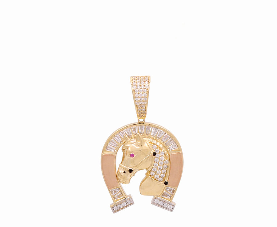 14K Two Tone Rose/Yellow Gold Horse with Cz Pendant