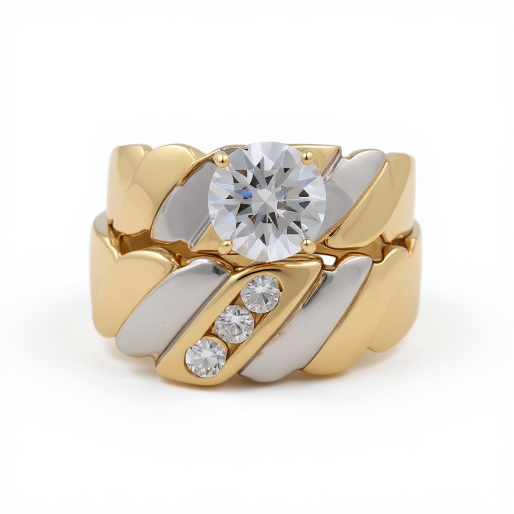 14K Two Tone White/Yellow Gold Bridal Set with CZ Fashion Women's Ring