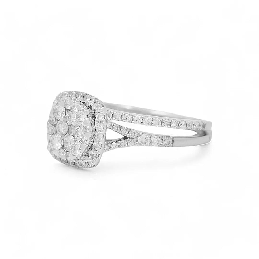 14K White Gold Square Bridal Woman Ring with Round Diamonds