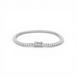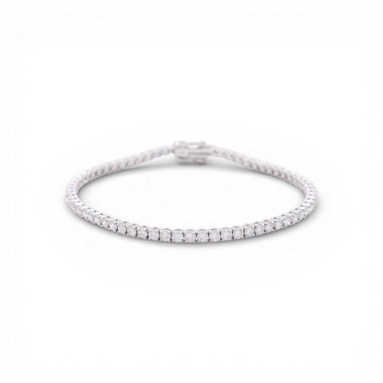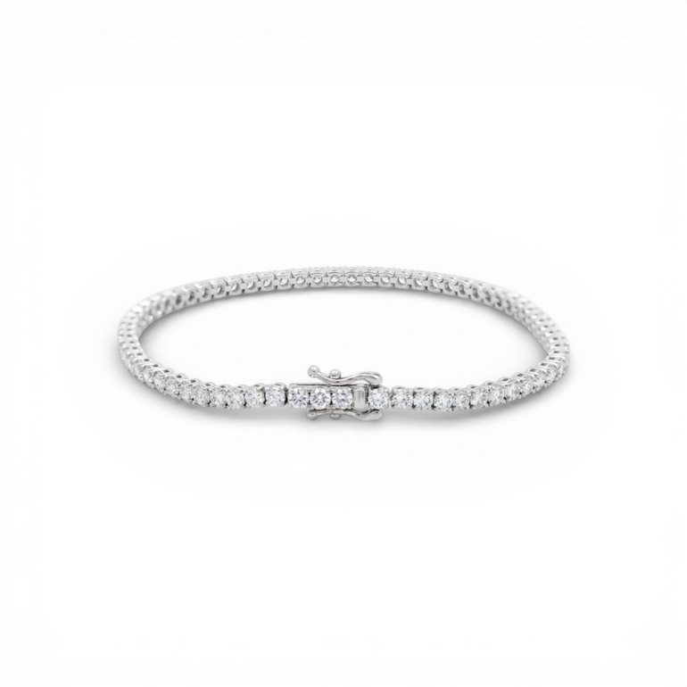 Elevate your everyday elegance with this stunning 14K white gold tennis bracelet, featuring 4.09 carats of brilliant round lab diamonds. Each stone is meticulously set in a classic line design that catches light from every angle, creating a luminous sparkle that complements any occasion—from casual sophistication to formal events. Lab diamonds offer exceptional quality and value without compromise. This bracelet combines timeless luxury with modern sensibility, delivering the brilliance and durability you expect from fine jewelry. The secure setting ensures your investment remains radiant for years to come. Perfect as a statement piece or layered with other bracelets, this tennis bracelet is a versatile addition to any jewelry collection.