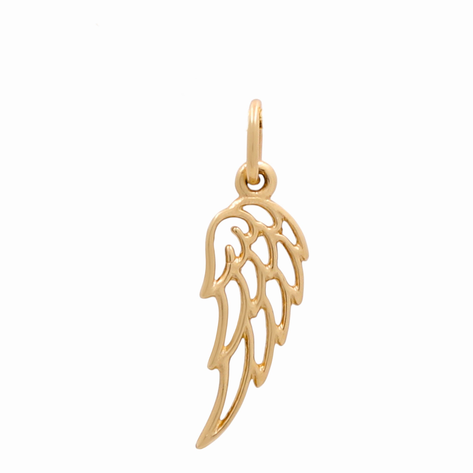 Feel the heavenly glow with this stunning 14K Yellow Gold Angel Wings Pendant! Crafted with exquisite attention to detail, this pendant is a symbol of faith and protection. The shining gold and intricately designed wings will add a touch of elegance to any outfit, making you feel confident and radiant. It's the perfect accessory for those who appreciate fine craftsmanship and timeless beauty. Order now and let your spirit soar with this heavenly pendant!