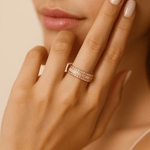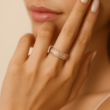 Elevate your style with this stunning 14K yellow gold band, expertly crafted to showcase a dazzling combination of 0.59 total carats of baguette diamonds and 0.44 total carats of round diamonds. The elegant design highlights the brilliance and clarity of each stone, creating a sophisticated sparkle that catches every eye. Perfect for adding a touch of luxury to any outfit, this fashion ring offers timeless beauty and exceptional craftsmanship that will complement your collection for years to come. Make a statement with a piece that blends classic elegance and modern flair effortlessly.